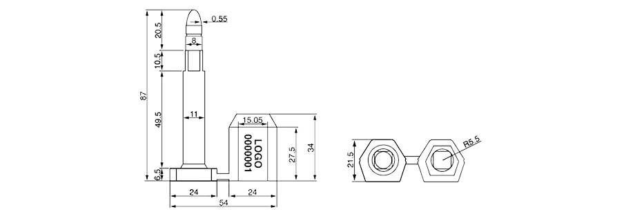 Altı (6) dişli, paslanmaz klit mekanizmalı yüksek kalite platlik güvenlik mührü.